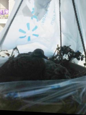 I say hello and speak to her every day and once the babies are born... Then I just have to peak in....I never interfered with nature but I helped her and her babies once.,, that was just to tie a plastic bag around the planter to protect her and the babies only because it was a really torrential rain and I was just a 1/2 inch from the babies when doing this and have attached the pics..,,they started to trust us and it was amazing.
