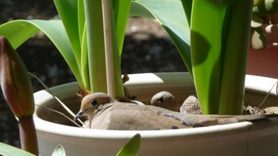 I'm not much of a writer, but I do want you to see the picture of my dove and her baby. I found her when I poured a cup of water in my plant.
