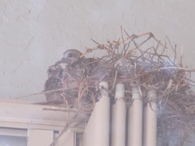 Us too: mama dove built her nest on the garage door opener, now the babies are about a week old.